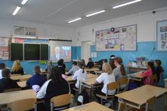 Учащиеся 10–11-х классов после демонстрации видеоролика об истории ТАСС отвечали на вопросы: А как вы считаете, сложно быть журналистом? Что должен знать и уметь журналист? Несёт ли он ответственность за ту информацию, которую передаёт?