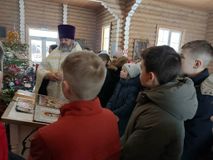 Настоятель храма, отец Игорь, тепло встретил ребят и провёл для них увлекательную беседу. Он рассказал о смысле и значении великих православных праздников — Рождества Христова и Крещения Господня (Богоявления). Школьники узнали о евангельских событиях, истории праздников, а также о связанных с ними добрых традициях: колядках, святках, освящении воды.